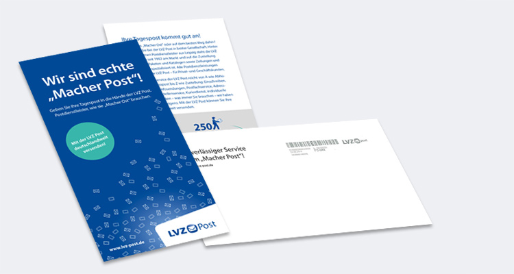 Ob Mailings, Katalogversand oder andere Sonderaktionen – ab einer Menge von 100 Stück pro Einlieferung behandeln wir Ihre Sendungen als Infopost. Mit dem komfortablen Dialogmarketing der LVZ Post können Sie Ihre Serien- und Werbebriefe sogar einfach und bequem direkt vom Arbeitsplatz versenden. Schicken Sie uns einfach Ihre verschlüsselten Daten. Wir kümmern uns um den Druck Ihrer Sendungen und übernehmen die Kuvertierung in unserem Lettershop. Die Zustellung erfolgt physisch durch die Briefzusteller LVZ Post. Übrigens: Gerne gestalten wir Ihr Mailing ganz nach Ihren Vorstellungen. Ihre Sendungen sind bereits fertig produziert? Auch hierfür bieten wir Ihnen sehr gern Lösungen an. Fragen Sie uns, wir beraten Sie gerne!