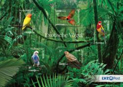 Mit Jahresbeginn 2023 gibt es neue Briefmarken bei der LVZ Post: Die fünf „Heimischen Vögel“ der letzten Briefmarken-Daueredition der LVZ Post werden durch die neue Daueredition „Exotische Vögel“ mit neuen Wertstufen ersetzt.