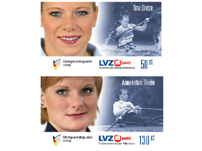 Die LVZ Post bringt mit den Marken der DHfK-Athletin Annekatrin Thiele (Weltmeisterin 2013, Silbermedailliengewinnerin Olympia London 2012) und LVB-Athletin Tina Dietze (Doppelweltmeisterin 2013, Gold- und Silbermedaillengewinnerin Olympia London 2012) zwei weitere Briefmarken der unregelmäßigen Serie von Leipziger Personen des aktuellen Zeitgeschehens heraus.
