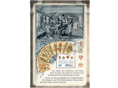 Andreas Erzkamp, Geschäftsführer der LVZ Post: „Ich habe mein Versprechen gehalten. Nun bringen wir nach kürzester Zeit eine neue Briefmarke für den Raum Altenburg heraus. Als regionaler Briefdienst sind wir immer bestrebt auch regionale Themen für unsere Briefmarken aufzugreifen. Daher freut es mich besonders, dass diese Marke dem Jubiläum 200 Jahre Skat gewidmet ist.“