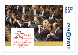 In diesem Jahr feiert das Gewandhausorchester sein bereits 275-jähriges Bestehen. Zur Würdigung des Jubiläums verausgabt die LVZ Post eine eigens kreierte Briefmarke samt Sonderstempel. Im Rahmen der Festveranstaltung wird die Marke am 11.3.2018 im Gewandhaus zu Leipzig vorgestellt und hat damit den Ersttag passend zum Geburtstag.