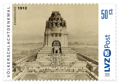 Vor über 100 Jahren wurde das Leipziger Völkerschlachtdenkmal eingeweiht. Zum Jubiläum in 2013 hatte die LVZ Post bereits eine Sondermarke mit dem Denkmal verausgabt. 2018 erschien eine weitere Sondermarke mit dem größten Denkmalsbau Europas. Nun gibt es eine Neuauflage der zuletzt erschienenen Ausgabe, welche das Völkerschlachtdenkmal in einer zarten Federzeichnung zeigt. Damit wird auch die langjährige Zusammenarbeit mit dem Völkerschlachtdenkmal fortgeführt.